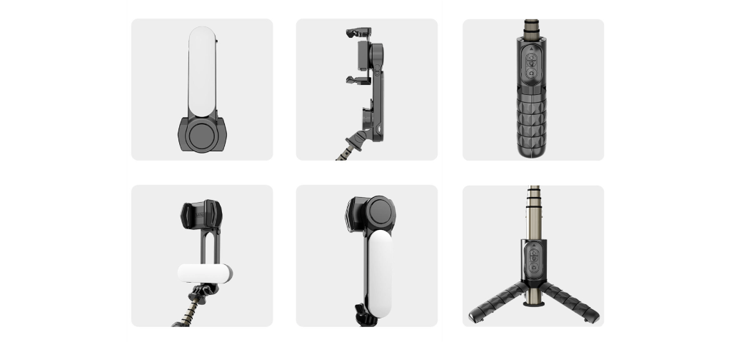 淨重僅235g,一次解決穩定器、腳架、補光等等問題,並且補光燈可以進行前後切換,內建的APP也能相當好的配合進行拍攝和後製。