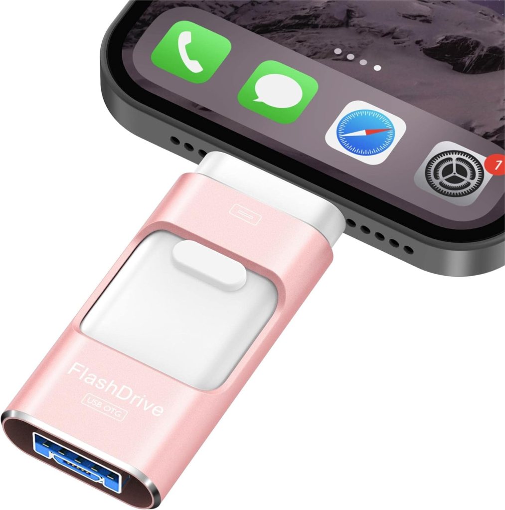 Step1.連接隨身碟至手機: 將口袋相簿手機隨身碟插入您手機的Type-C或Lightning接口,確保連接穩固。